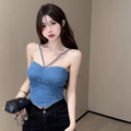 The built-in bra provides light support and eliminates the need for layering, making it the perfect go-to top for hot summer days or nights out. With its adjustable spaghetti straps, you can customize the fit for maximum comfort and style. Whether worn on its own for a sleek, minimalist look or layered under a jacket or cardigan, this denim camisole is versatile enough for casual wear, parties, or even a chic date-night outfit.