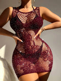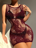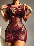 The delicate fishnet pattern is adorned with sparkling rhinestones, adding a touch of bridal shimmer that catches the light with every move. Whether worn for a honeymoon night, bridal photoshoot, or layered under a sheer robe, this piece delivers a bold yet graceful statement.