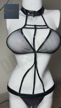 The strappy halter neckline frames your shoulders and collarbone with precision, while the daring front zipper and metallic ring detail add a provocative twist. Whether zipped up for a sleek silhouette or left slightly open for a teasing reveal, this bodysuit lets you control the mood.