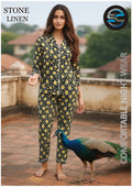 Elevate your nightwear with the 2 PCs Black and Yellow Flowery Pattern Night Dress, crafted from premium linen fabric for unmatched comfort and breathability. Linen is naturally soft, lightweight, and cooling, making this set the ideal choice for restful nights and relaxed evenings at home.