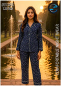 The soothing blue base is beautifully contrasted with elegant dark patterns, creating a chic and modern design that adds depth and sophistication to your nightwear collection. The relaxed silhouette drapes gracefully, allowing ease of movement while maintaining a flattering look. Whether you’re winding down after a busy day or enjoying a cozy weekend at home, this set blends practicality with timeless charm.