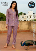 The soft mauve base is beautifully accented with cheerful multicolor dot patterns, creating a lively and stylish design that brightens up your nighttime wardrobe. The relaxed silhouette drapes gracefully, allowing ease of movement while maintaining a flattering look. Whether you’re winding down after a busy day or enjoying a cozy weekend at home, this set blends practicality with charm.