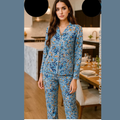 The soothing powder blue shade, adorned with delicate small dot patterns, creates a timeless look that feels both playful and refined. Designed with a relaxed silhouette, this night dress drapes gracefully while allowing ease of movement, ensuring you feel comfortable without compromising on style.