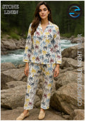 Bring tropical vibes to your nightwear with our 2 PCs White and Multicolor Palm Trees Pattern Night Dress, crafted from premium linen fabric for ultimate comfort and durability. Linen’s natural breathability and cooling properties make this set perfect for restful nights, keeping you fresh and relaxed while offering long‑lasting wear.